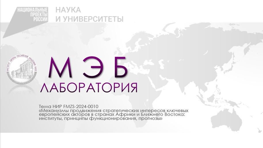- НИР FMZS-2024-0010 2024 – 2026 гг.: «Механизмы продвижения стратегических интересов ключевых европейских акторов в странах Африки и Ближнего Востока: институты, принципы функционирования, прогнозы» (Всероссийский конкурс Минобрнауки РФ по созданию новых молодёжных лабораторий под руководством перспективных молодых исследователей в рамках федерального проекта «Наука и университеты» )