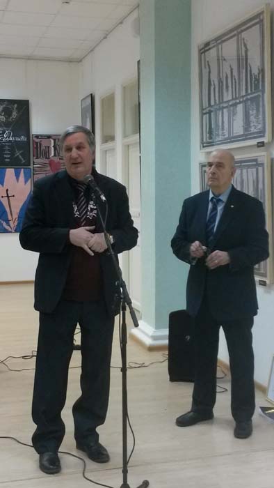 В своём выступлении В.П. Журавель поблагодарил художника за разработку целой серии логотипов по арктической проблематике, которые используются на форумах стран Арктического совета. Особые слова благодарности он высказал за организацию в Институте Европы РАН художественной выставки плакатов в канун празднования 70-летия Победы в Великой Отечественной войне (апрель 2015 г.).