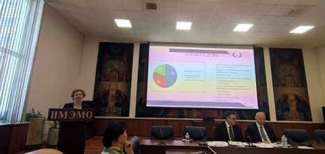 Заседание прошло под руководством президента ИМЭМО РАН, академика РАН, д.э.н., проф. А.А. Дынкина и директора ИМЭМО РАН, чл.-корр. РАН, д.полит.н., проф. РАН Г.Ф. Войтоловского.