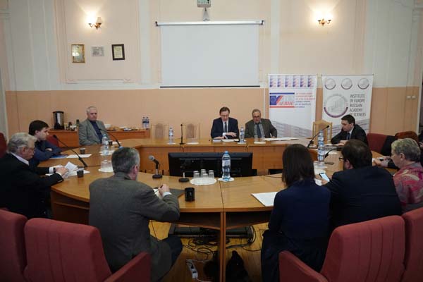 В научной дискуссии приняли участие представители академических институтов (ИВ РАН, ИСК РАН, ИМЭМО РАН, ИА РАН), эксперты из РГГУ, представители миссии ЕС в Москве и ряда иностранных посольств, а также европейских гуманитарных фондов.