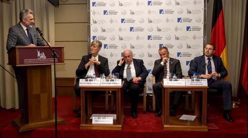 Д-р Уве Леманн-Браунс, Вице-президент Парламента Берлина в отставке, и академик А.О. Чубарьян, сопредседатель Российского Исторического Общества и Совместной комиссии по изучению новейшей истории российско-германских отношений, выступили с докладами о послевоенной истории Германии и России и перспективах развития российско-германских отношений в свете данного события.