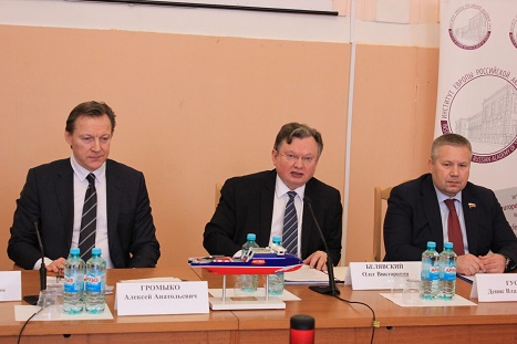 Директор Института Европы РАН Ал.А. Громыко поздравил всех присутствующих с Днем науки (8 февраля) и Днем дипломатического работника (10 февраля).