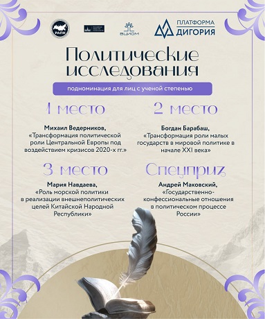 М.В. Ведерников стал лауреатом І степени в номинации «Политические исследования» за цикл научных работ по теме «Трансформация политической роли Центральной Европы под воздействием кризисов 2020-х гг.»