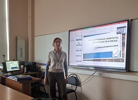 Мероприятие прошло на базе экономического факультета МГУ им. М.В. Ломоносова в форме пленарного заседания и нескольких тематических направлений. Н.В. Говорова выступила в рамках направления «Трансформация бизнеса и образования: новые вызовы и возможности» на сессии «Платформенная экономика: адаптационные возможности и эффективность» с докладом «Платформенная занятость: возможности и риски». Эксперт проанализировала тренды развития рынка труда, параметры платформенной занятости в мире, Европейском союзе и России, преимущества и риски нестандартной занятости, роль и ответственность государства в социально-трудовой сфере в цифровую эпоху.