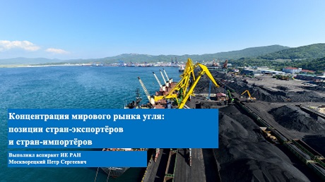 Пётр Москворецкий представил доклад «Процессы концентрации на мировом рынке угля: позиции стран-экспортёров и стран-импортёров». Автор отметил, что с начала XXI века концентрация как экспорта, так и импорта на мировом рынке угля стремительно росла. Рынки других видов ископаемого топлива за тот же период, наоборот, стали более диверсифицированными. Обнаружено, что крупнейшие поставщики угля имеют большую концентрацию экспорта, чем более мелкие экспортеры. Данные факты позволяют сделать вывод о том, что крупнейшие поставщики угля ориентируются на крупнейших импортеров рынка и работают с меньшим числом партнеров, чем более мелкие экспортеры.