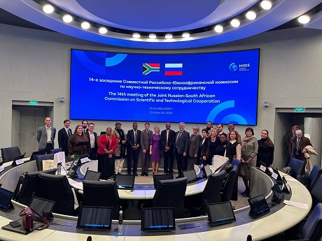 30 октября 2025 года сотрудники Института Европы РАН – А.К. Иванова, руководитель Лаборатории МЭБ; М.В. Ведерников, в.н.с. Лаборатории МЭБ и Отдела исследований Центральной и Восточной Европы; Р.Е. Жилин, м.н.с. Отдела европейской безопасности; А.Д. Дашичев, м.н.с. Отдела социальных и политических исследований – приняли участие в 14-м заседании Совместной Российско-Южноафриканской комиссии по научно-техническому сотрудничеству, которое состоялось в стенах Университета науки и технологий МИСИС. Комиссия была учреждена в 2014 г. в соответствии с двусторонним межправительственным соглашением о научно-техническом сотрудничестве.