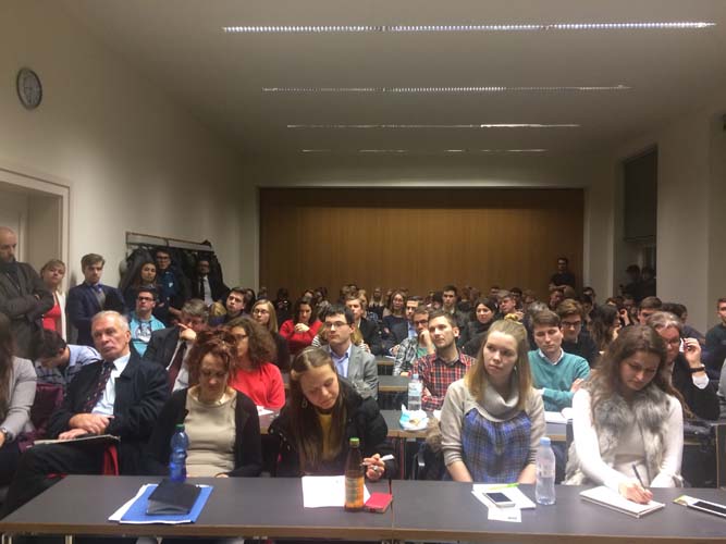 В дискуссии, которую модерировал проф. Ф. Хуберт, также приняли участие политолог и заместитель руководителя Союза российской экономики в Германии А. Рар и основатель и глава интернет-издания «Dekoder» М. Крос. Особое внимание было уделено вопросам общего и особенного в восприятии европейских ценностей российским и западным сообществами и тому, как такое восприятие отражается во внутренней и внешней политике России.
