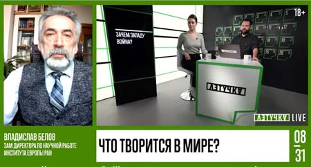 15 и 16 февраля 2022 года заместитель директора по научной работе Института Европы РАН, руководитель Отдела страновых исследований и Центра германских исследований В.Б. Белов в прямом эфире телеканалов ОНС и RT прокомментировал итоги переговоров президента РФ В.В. Путина и канцлера ФРГ О. Шольца.